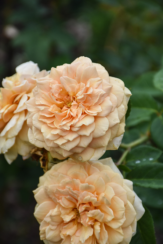 This elegant shrub produces full, yellow-peach blooms; outer petals fall back and mature to butter yellow; lovely strong fragrance; needs full sun and well-drained soil; good disease resistance; can be trained as a climbing rose