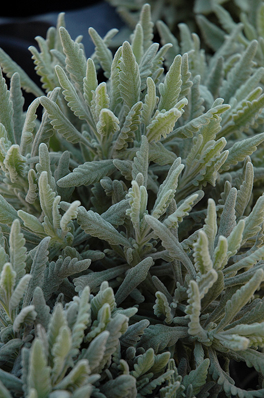 This beautiful, aromatic variety forms a bushy shrub of bright silver-gray leaves bearing tall spikes of deep purple flowers for a long period; excellent choice for low, informal hedging, borders, or containers; best wintered indoors in colder areas