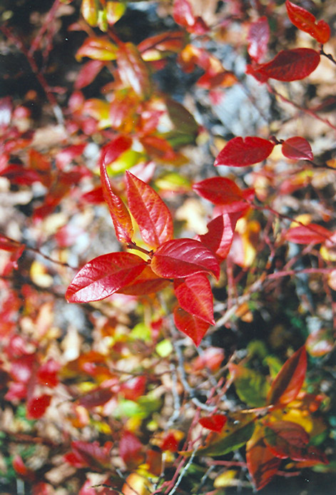 An extremely hardy hybrid blueberry, forms a compact mound, spectacular fall color, produces good crops of sky blue fruit in mid summer; all blueberries require highly acidic soils, excellent drainage and a good mulch, plant with plenty of peat moss