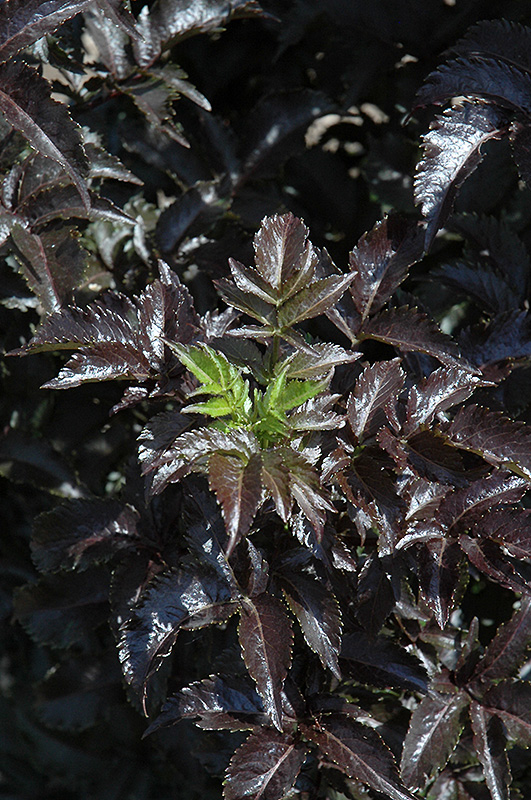 Black Tower Elder features showy clusters of fragrant shell pink flowers held atop the branches in early summer, which emerge from distinctive rose flower buds. It has attractive black deciduous foliage which emerges light green in spring. The serrated compound leaves are highly ornamental but do not develop any appreciable fall color. The black fruits are held in clusters in early fall.