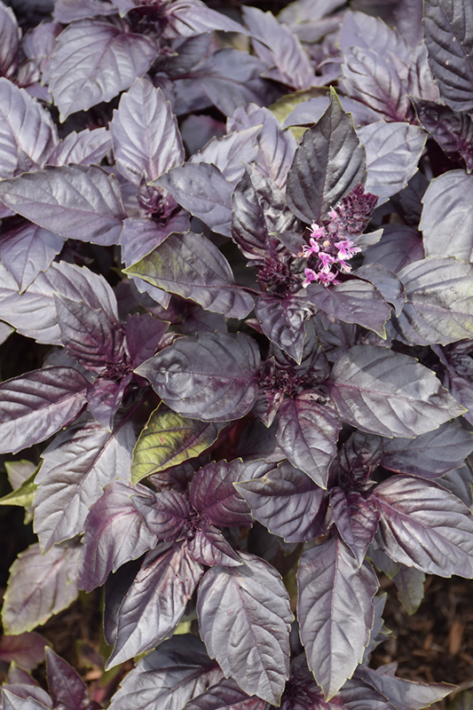 An ornamental herb producing flower spikes adorned with white and purple flowers in mid summer; flavorful deep purple-red leaves; great for mixed containers, herb gardens, and annual beds