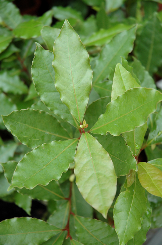 A normally pyramidal, aromatic, evergreen tree or large shrub, with leathery, glossy dark green leaves commonly used as a culinary herb; may be pruned to any shape and size; great as a hedge, screen, or container plant; an excellent houseplant