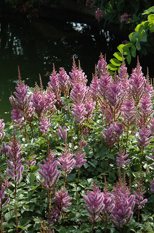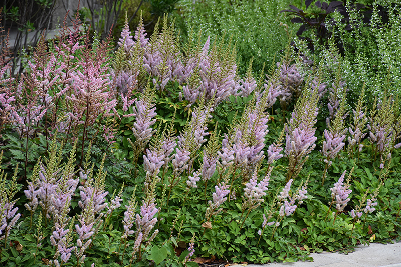 A low maintenance, shade loving variety; low foliage mounds of ferny, toothed foliage with tall stems rising above, presents lilac-pink, plume-like flowers; an excellent addition to rain gardens, cut-flower arrangements or used as groundcover