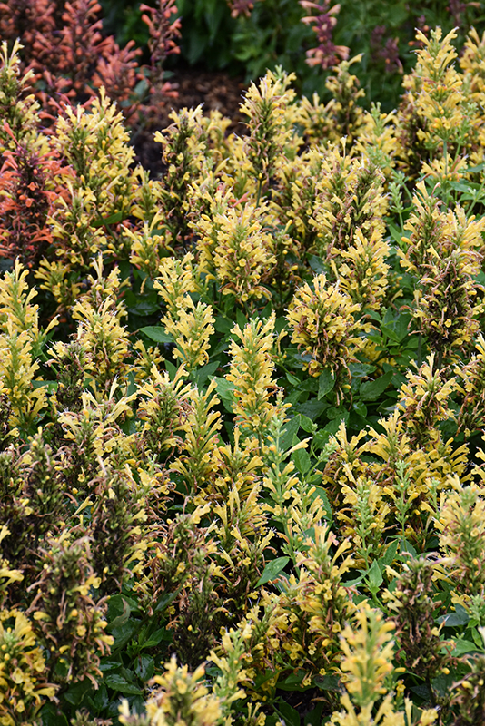 Poquito™ Butter Yellow Hyssop will grow to be about 10 inches tall at maturity, with a spread of 15 inches. When grown in masses or used as a bedding plant, individual plants should be spaced approximately 12 inches apart. It grows at a fast rate, and under ideal conditions can be expected to live for approximately 6 years. As an herbaceous perennial, this plant will usually die back to the crown each winter, and will regrow from the base each spring. Be careful not to disturb the crown in late winter when it may not be readily seen!