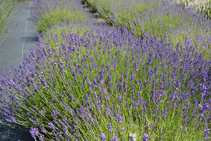 Provence Blue Lavender will grow to be about 12 inches tall at maturity extending to 16 inches tall with the flowers, with a spread of 14 inches. When grown in masses or used as a bedding plant, individual plants should be spaced approximately 12 inches apart. It tends to fill out right to the ground and therefore doesn't necessarily require facer plants in front. It grows at a slow rate, and under ideal conditions can be expected to live for approximately 10 years.