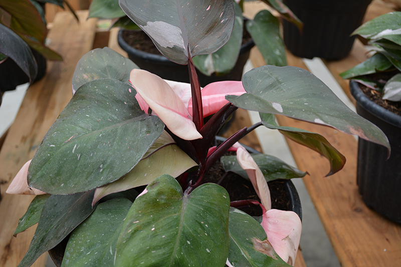 Prismacolor™ Pink Princess Philodendron's attractive large glossy heart-shaped leaves remain dark green in color with showy hot pink variegation and tinges of creamy white throughout the year on a plant with an upright spreading habit of growth. The crimson stems are very effective and add to the plant's interest.