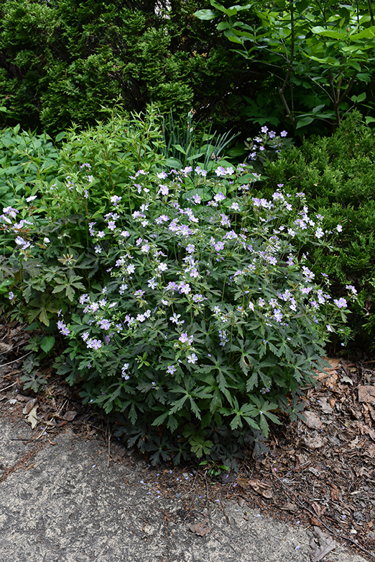 Crane Dance Cranesbill will grow to be about 24 inches tall at maturity, with a spread of 32 inches. When grown in masses or used as a bedding plant, individual plants should be spaced approximately 28 inches apart. Its foliage tends to remain dense right to the ground, not requiring facer plants in front. It grows at a medium rate, and under ideal conditions can be expected to live for approximately 10 years. As an herbaceous perennial, this plant will usually die back to the crown each winter, and will regrow from the base each spring. Be careful not to disturb the crown in late winter when it may not be readily seen!