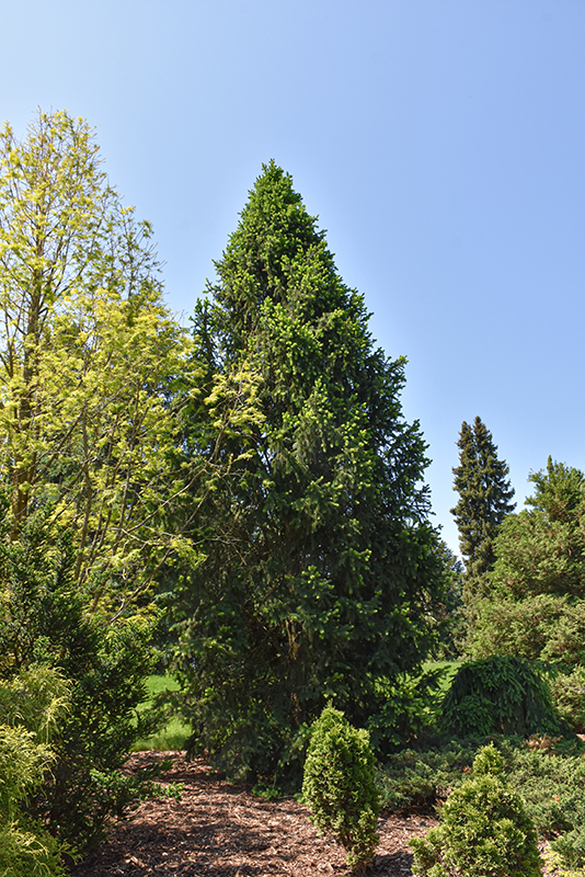 Columnar Norway Spruce is a dense evergreen tree with a strong central leader and a narrowly upright and columnar growth habit. Its relatively fine texture sets it apart from other landscape plants with less refined foliage.