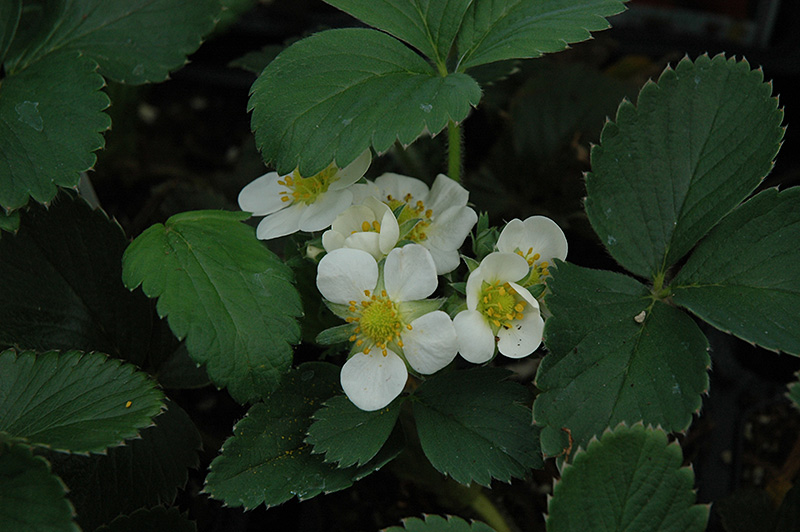 Honeoye Strawberry features dainty white daisy flowers with yellow eyes along the stems in mid spring. Its tomentose round compound leaves remain green in color throughout the season. It features an abundance of magnificent cherry red berries in early summer.