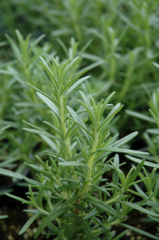 Regarded as the most hardy rosemary cultivar, originally found in Arp Texas in 1972; thick resinous gray green leaves with a lemony scent and an open growth habit; an herb widely used in cooking, and an excellent choice for topiaries
