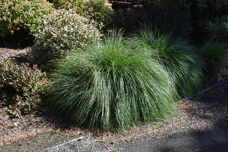 A fine textured dwarf fountain grass suitable for smaller areas; bright green foliage changes to a golden tan in fall; blooms are large bottle brush like cream plumes that persist until winter; beautiful as an accent or massed in borders or rock garden